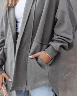 Tripp Pocketed Hooded Cardigan – Charcoal – FINAL SALE