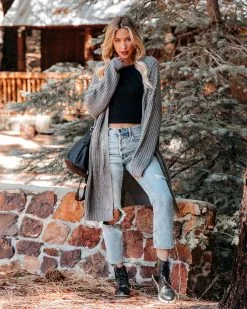 Peace And Love Knit Cardigan – Charcoal – FINAL SALE