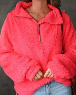 Octavia Pocketed Half Zip Fleece – Coral – FINAL SALE