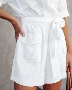 Marina Textured Cargo Romper – White