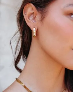 Lou Pearl Square Mini Hoops – Gold