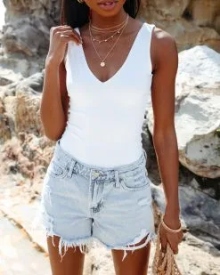 DRES-001 Everyday Vibes V-Neck Bodysuit – White
