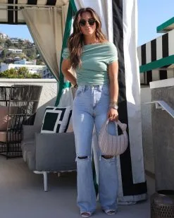 CHRY-001 Benji Off The Shoulder Ruched Bodysuit – Sage
