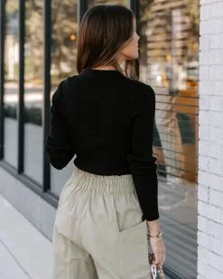ENDL-001 Aadyn Collared Button Down Knit Bodysuit – Black – FINAL SALE