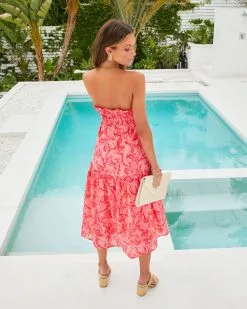 Tarot Smocked Tiered Midi Dress – Pink/Orange