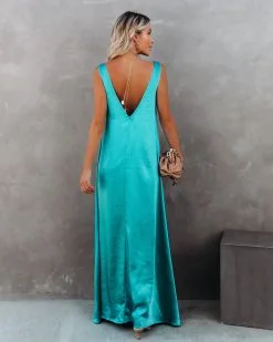 Empire Satin Maxi Dress – Aqua – FINAL SALE