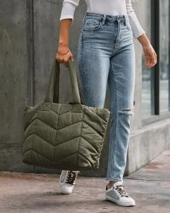 Avery Quilted Nylon Tote – Olive – LAST CHANCE
