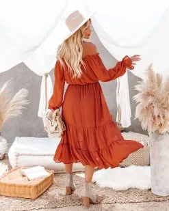 Peacekeeper Off The Shoulder Midi Dress – Burnt Orange – FINAL SALE