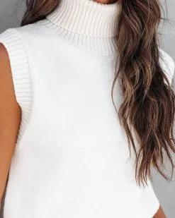 Peyton Knit Turtleneck Sweater Vest – Cream – FINAL SALE