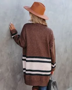 Precious Moments Striped Pocketed Cardigan – Coffee – FINAL SALE