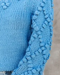 Juniper One Shoulder Knit Pom Sweater – Blue – FINAL SALE
