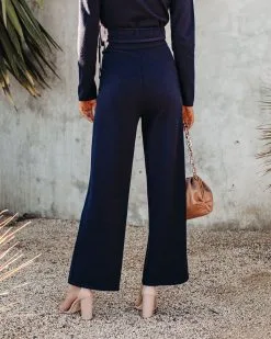 ALL-001 Nadia Wide Leg Knit Pants – Navy – FINAL SALE