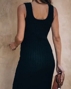 Desert Moon Cotton Ribbed Midi Dress – Black – FINAL SALE