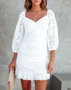 Forget You Not Cotton Eyelet Mini Dress – White – SALE
