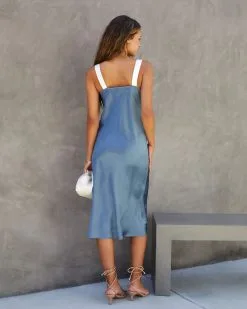 Notebook Romance Satin Colorblock Midi Dress – Navy