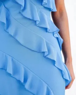 Ocean Waves Tiered Ruffle Maxi Dress – Blue – SALE