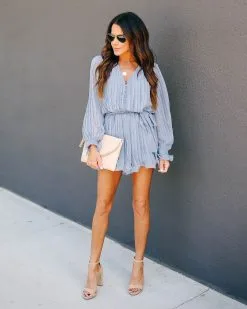 Exclusivity Swiss Dot Pleated Romper – Light Blue – FINAL SALE
