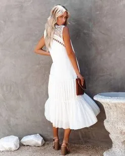 Sizzle Pocketed Crochet Lace Midi Dress – Off White – LAST CHANCE