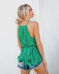 Viera Polka Dot Pleated Tie Top – Green – LAST CHANCE