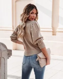 Yorkville Pearl Embellished Knit Sweater – Almond – FINAL SALE