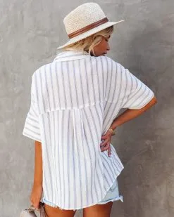 BY T-001 Stan Cotton Striped Button Down Top – LAST CHANCE