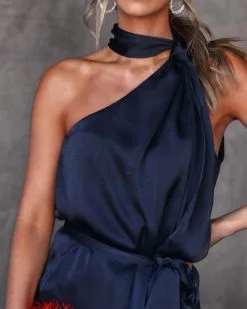 NAKE-001 Lucy Satin Front Tie Top – Black – FINAL SALE