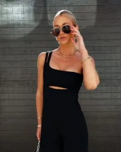 Call Away Cotton Strapless Smocked Pocketed Jumpsuit – Black – SALE