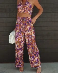 ACOA-001 Summer Rise Printed Satin Wide Leg Pocketed Pant