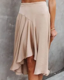 TYCH-001 Palmer Satin Ruffle Midi Skirt – Tan – SALE