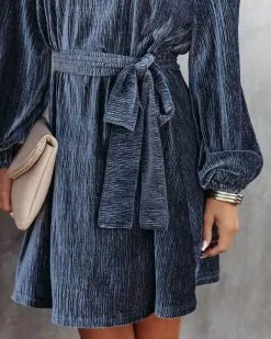 Harlyn Velvet Tie Dress – Grey – FINAL SALE