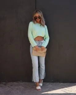 Slippery Slope Crop Knit Sweater – Mint – LAST CHANCE