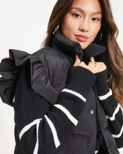 Winter Glam Pocketed Ruffle Puff Vest – Black – FINAL SALE