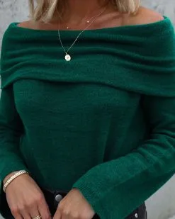 Dreamworld Off The Shoulder Pullover Sweater – Green – FINAL SALE