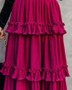 ENDL-001 Nasreen Plisse Chiffon Tiered Maxi Skirt – Wine – FINAL SALE