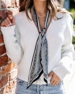 Capri Printed Tie Scarf – Black – LAST CHANCE