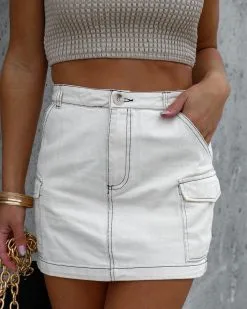 EMOR-001 Angelina Cargo Mini Skirt – Ivory – FINAL SALE