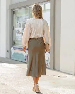 GRAD-001 Shawn Satin Midi Skirt – Olive – FINAL SALE