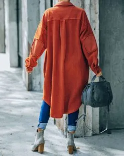 Alayjah Pocketed Longline Fleece Shacket – Rust – FINAL SALE