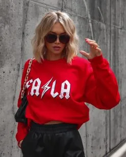 Esen Ribbed Bell Sleeve Knit Sweater – Red – FINAL SALE