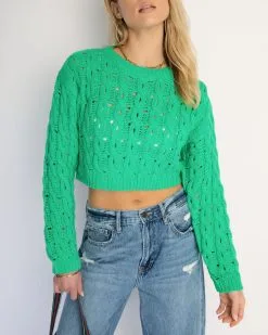Helsa Cropped Knit Sweater – Green – FINAL SALE