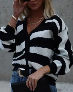 Outside The Box Knit Button Front Cardigan – Black/White – SALE