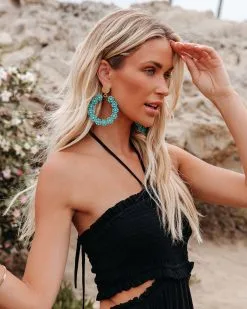 Bellflower Beaded Drop Hoop Earrings – Turquoise – LAST CHANCE