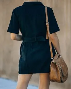 Pulse Cotton Pocketed Denim Utility Dress – Black – FINAL SALE