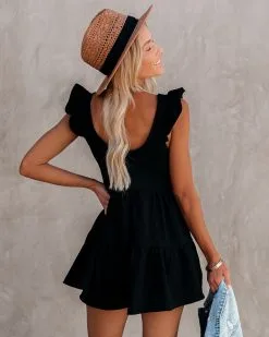 My Oasis Pocketed Babydoll Romper – Black – FINAL SALE