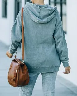 Iza Cotton Blend Pocketed Henley Hoodie – Seafoam – LAST CHANCE
