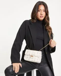 Amelia Crossbody Tweed Bag – White – LAST CHANCE
