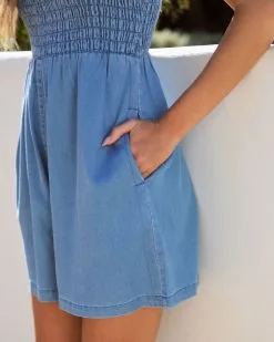 Boardwalk Dates Smocked Pocketed Romper – Blue