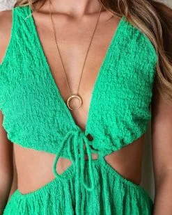 Island Escapades Cotton Blend Textured Cutout Maxi Dress – Green – SALE