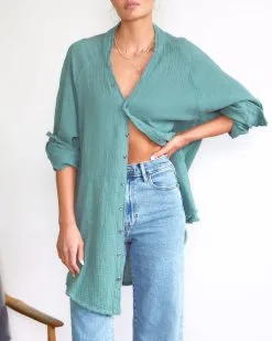 Kennedy Cotton Pocketed Button Down Tunic – Green