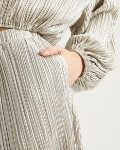 DRES-001 Kiyara Pocketed High Rise Shimmer Plisse Pants – Silver – FINAL SALE